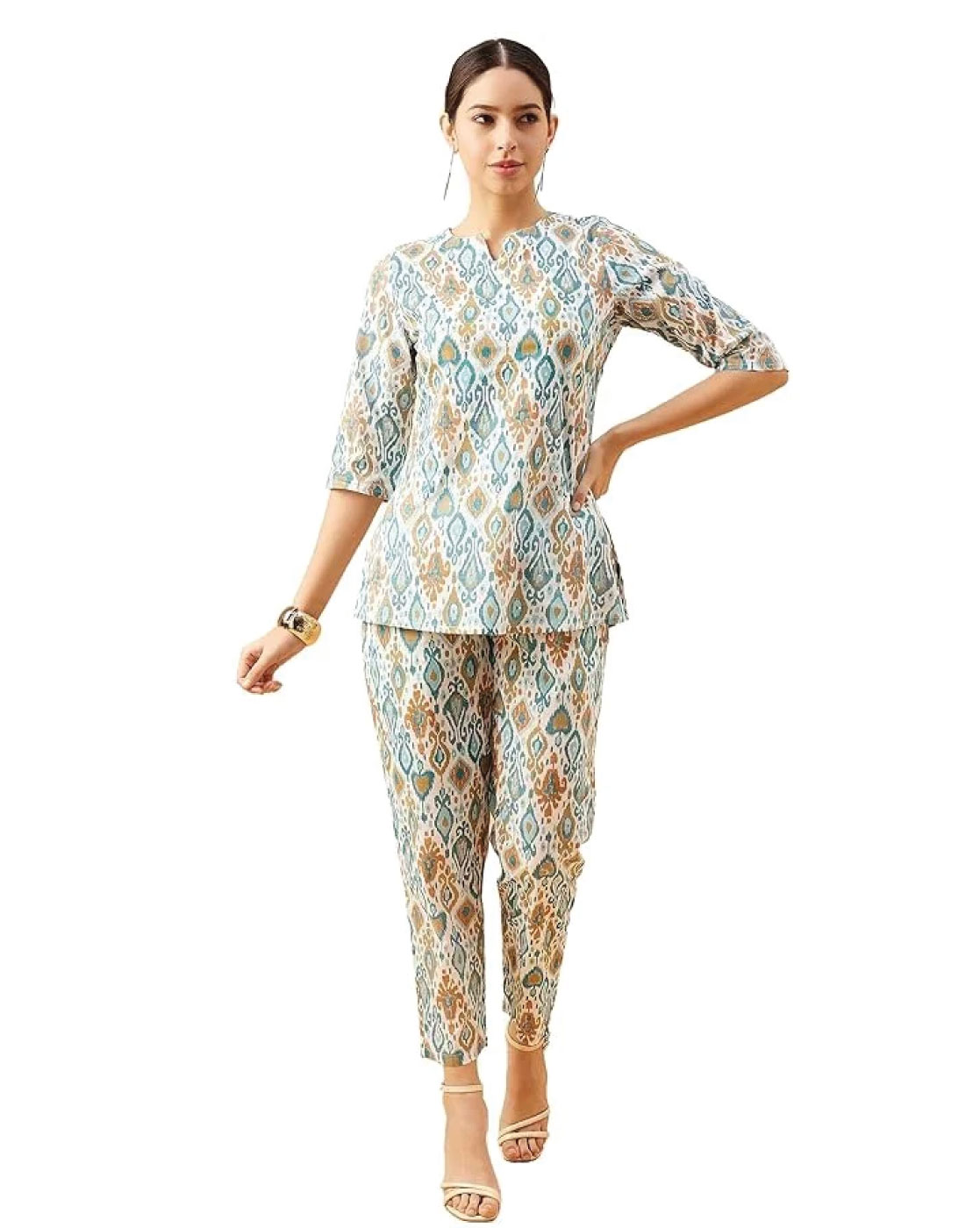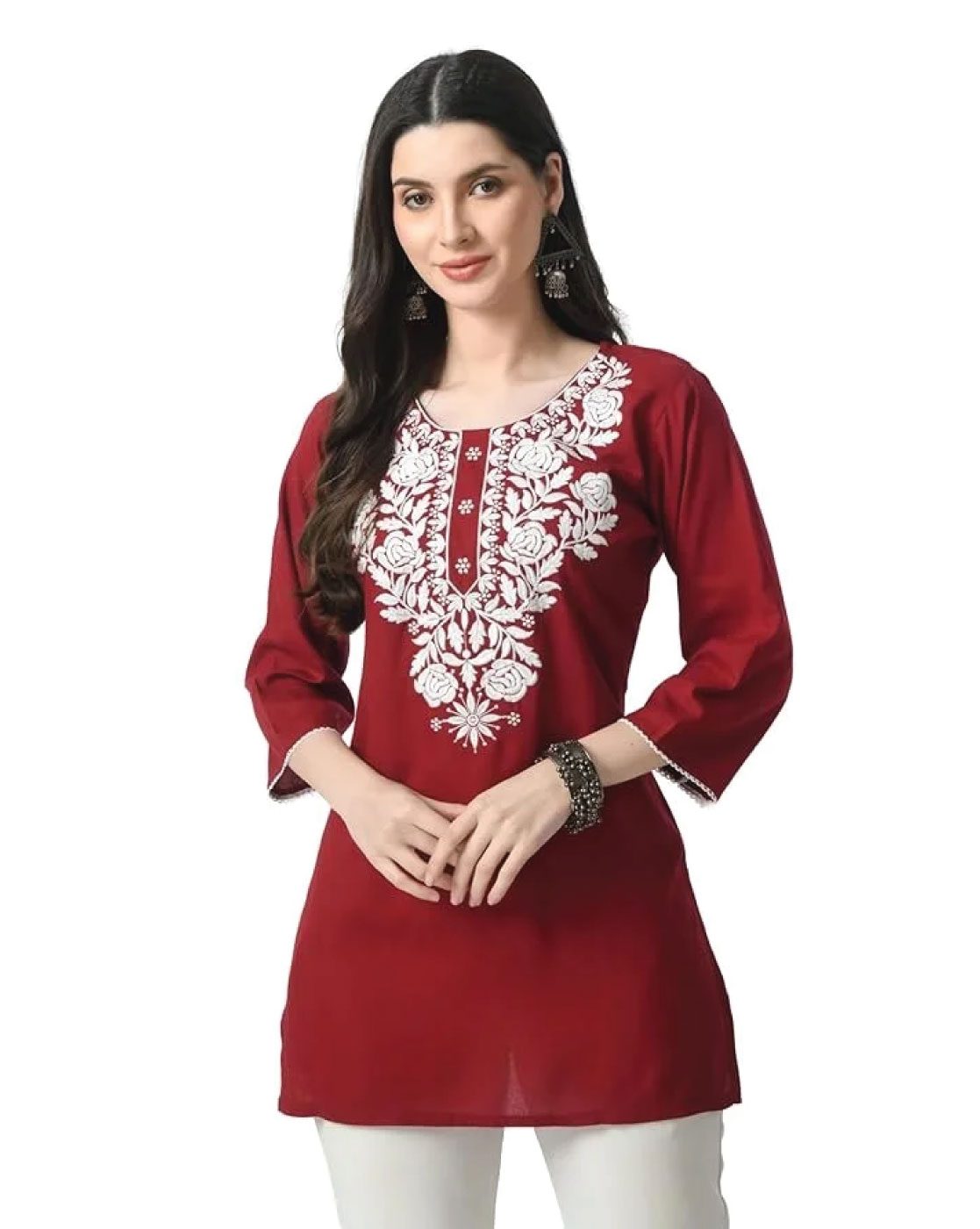Polyester Women’s Floral Placement 3/4 Sleeve and Keyhole Neck Printed Short Kurti (Copy)