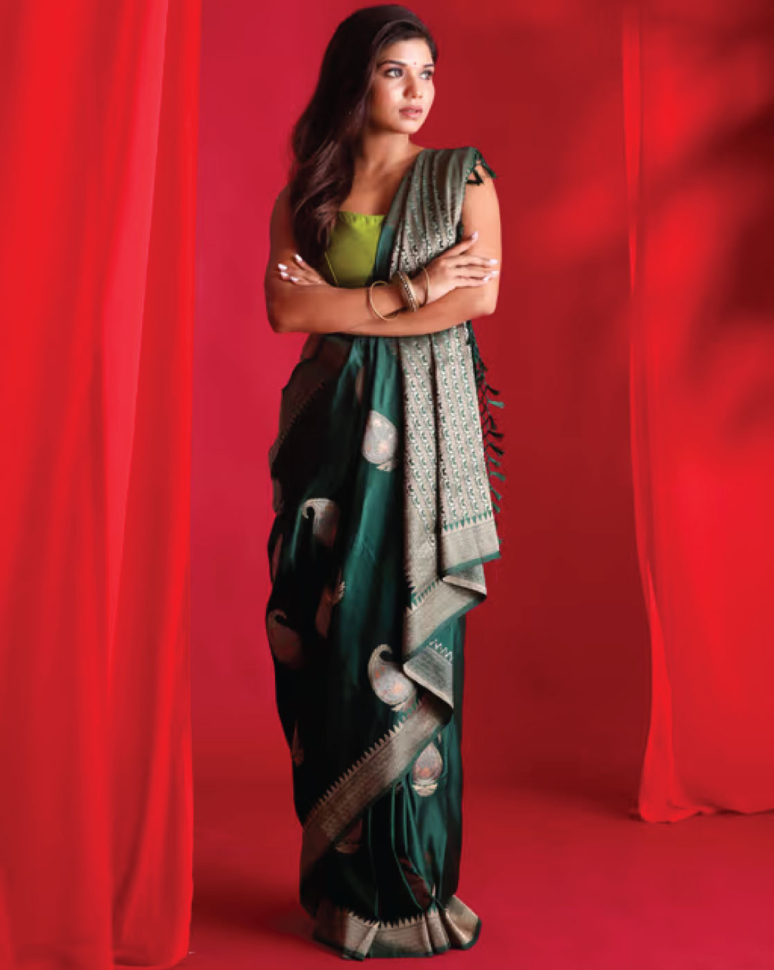 ₹10,000.00 Incl. GSTGreen Woven Banarasi Saree with Unstitched Blouse