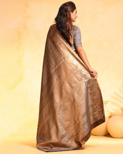 - The last image gives a detailed look of the blouse piece that comes with this saree (The model is wearing a blouse from our in-house wardrobe)