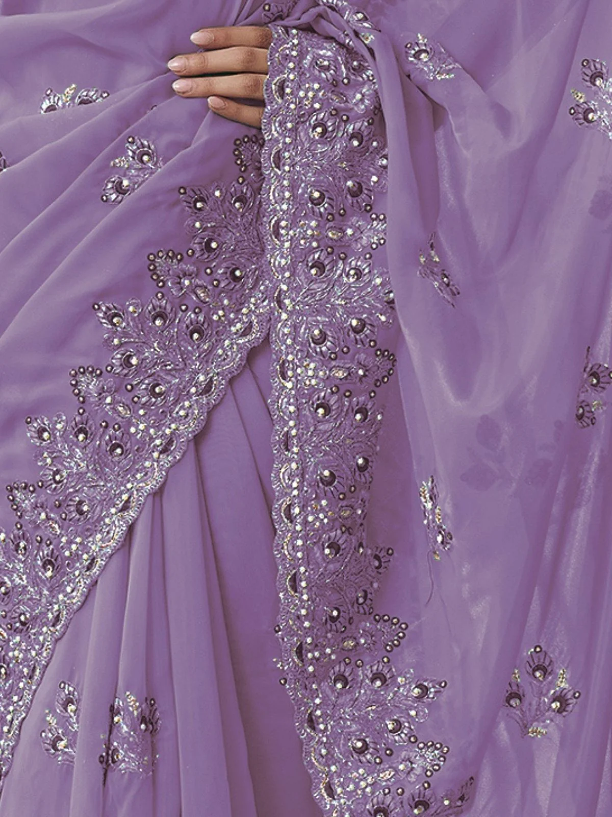 - The last image gives a detailed look of the blouse piece that comes with this saree (The model is wearing a blouse from our in-house wardrobe)
